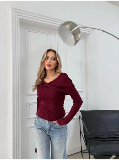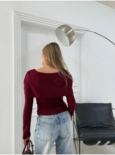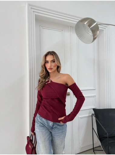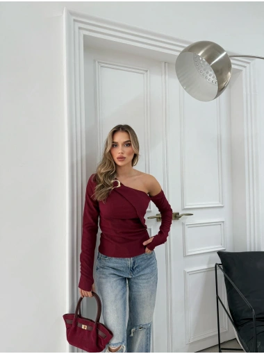 AKSESUAR DETAY OMUZ DEKOLTE BLUZ BORDO