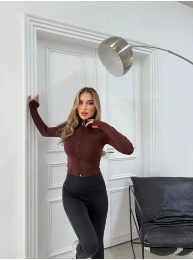 FERMUARLI PARMAK GEÇME DETAY CROP BLUZ KAHVE