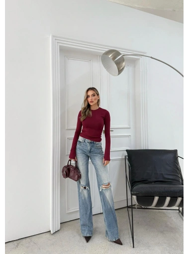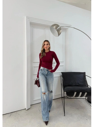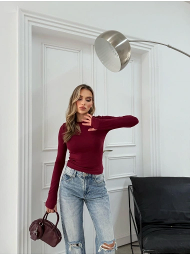 MODAL KUMAŞ PARMAK GEÇMELİ BASİC BLUZ BORDO