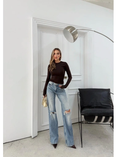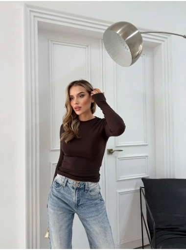 MODAL KUMAŞ PARMAK GEÇMELİ BASİC BLUZ KAHVE