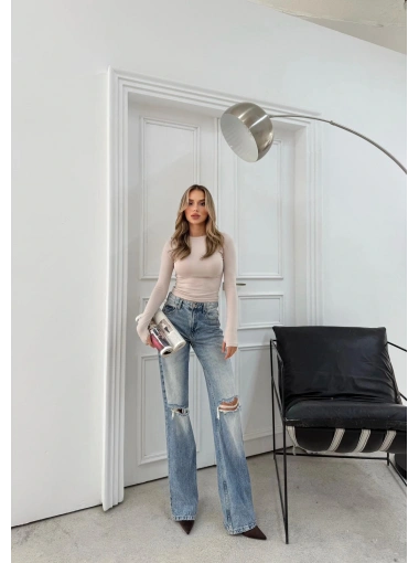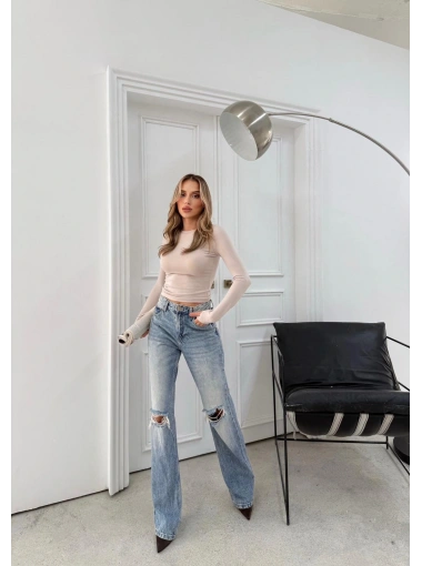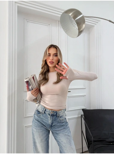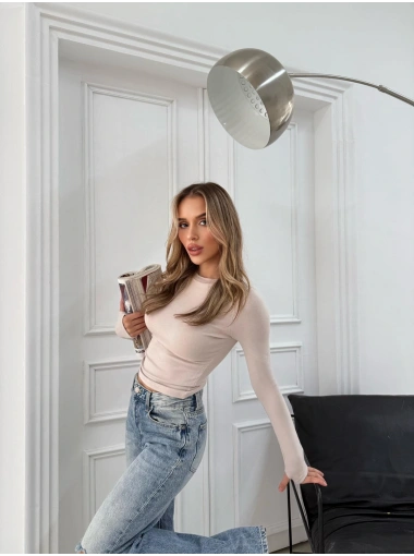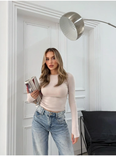 MODAL KUMAŞ PARMAK GEÇMELİ BASİC BLUZ KREM