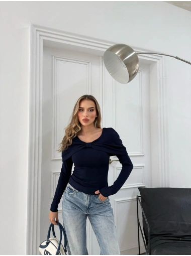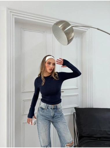 MODAL KUMAŞ PARMAK GEÇMELİ BASİC BLUZ LACİVERT