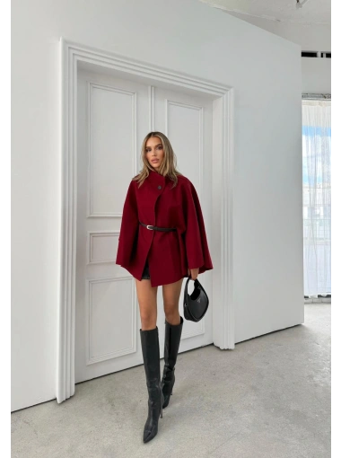 BEL LASTİK DETAY İÇ ASTARLI DERİ CEKET BORDO 3128