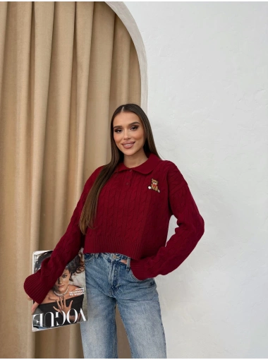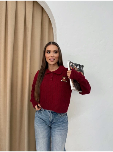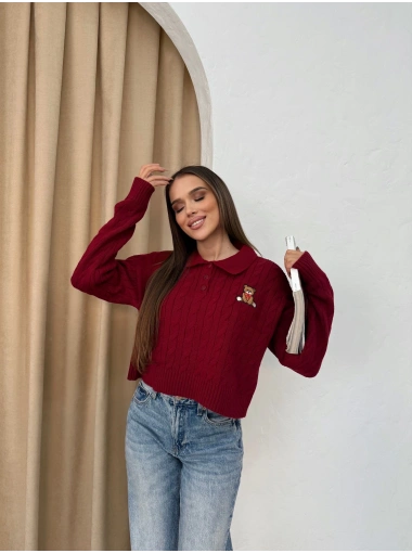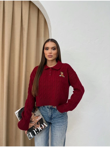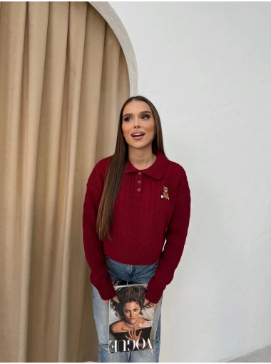 YAKALI AYICIK NAKIŞ DETAY TRİKO KAZAK BORDO