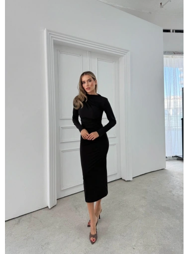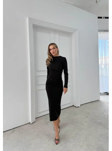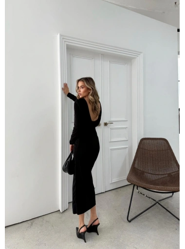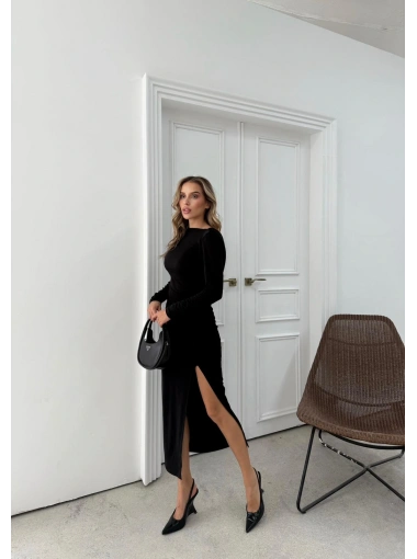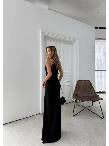 YIRTMAÇLI SIRT DEKOLTE DETAY UZUN SANDY ELBİSE SİYAH SND-5010