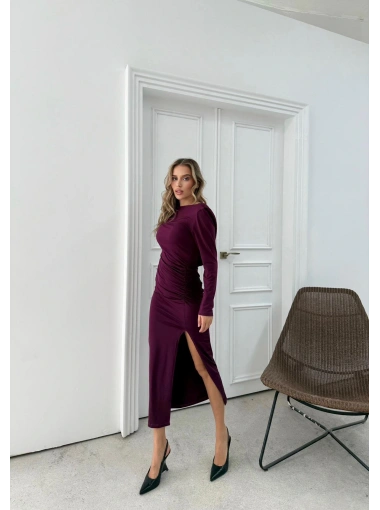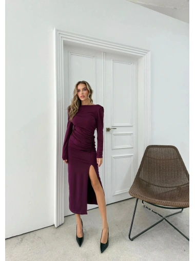 YIRTMAÇLI SIRT DEKOLTE DETAY UZUN SANDY ELBİSE MÜRDÜM SND-5010