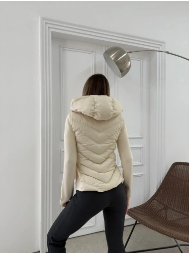 KOL ÇIRTLI KAPİŞONLU ŞİŞME MONT BEJ