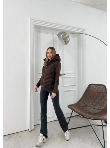 YAKA KÜRK DETAY İÇ ASTARLI ŞİŞME MONT KAHVE 1132