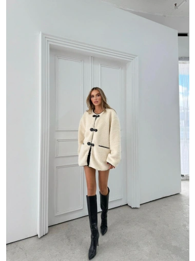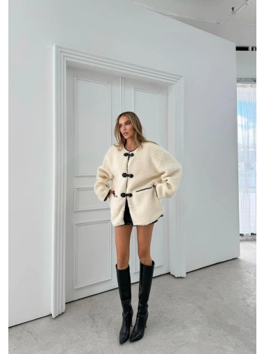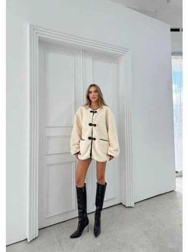 BİYELİ DÜĞME DETAY İÇ ASTARLI TEDDY KABAN KREM
