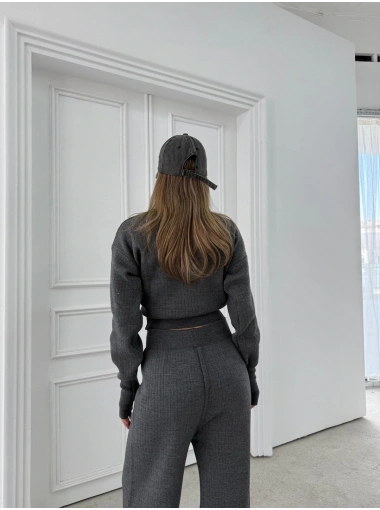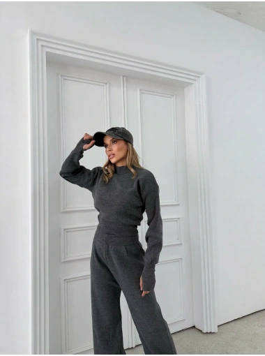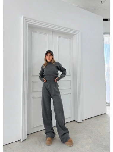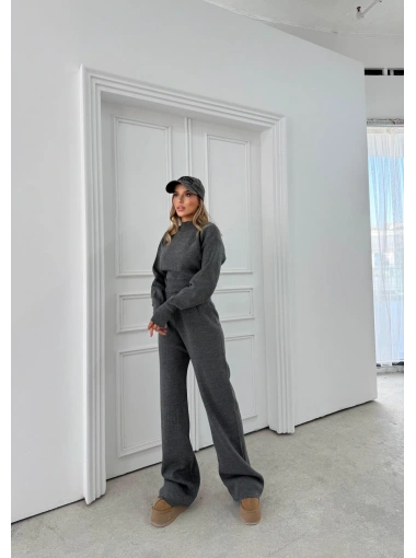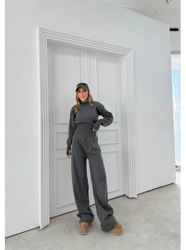 DİK YAKA PARMAK GEÇME DETAY KAZAK VE PANTOLONLU TRİKO İKİLİ TAKIM ANTRASİT