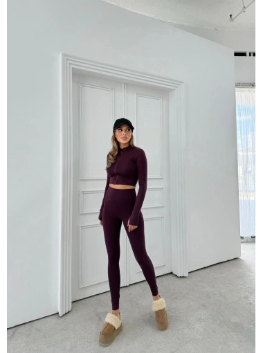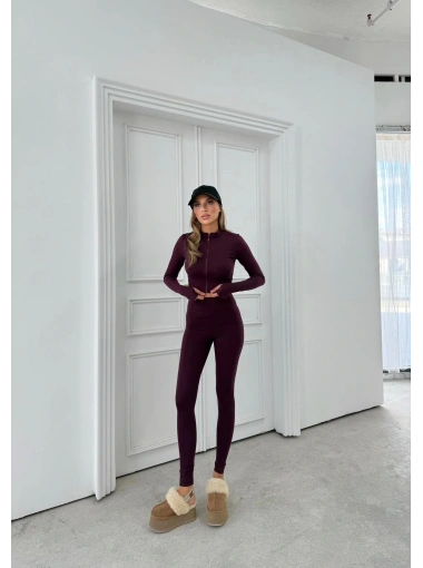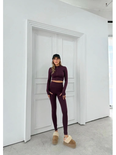 FERMUARLI PARMAK GEÇME DETAY BLUZ VE PANTOLONLU TAYT TAKIM MÜRDÜM