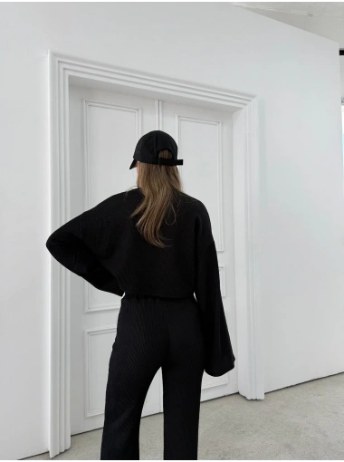 İSPANYOL KOL ÇOBAN DİKİŞ DETAY KAZAK VE PANTOLONLU TRİKO İKİLİ TAKIM SİYAH