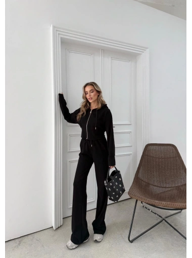 ASİMETRİK DETAY KAZAK VE PANTOLONLU TRİKO İKİLİ TAKIM SİYAH RY-8010