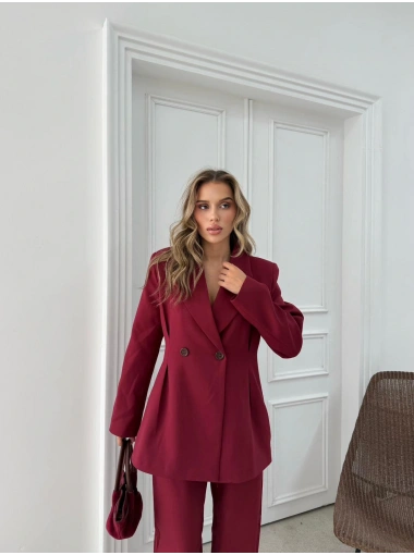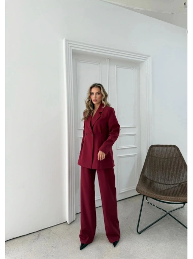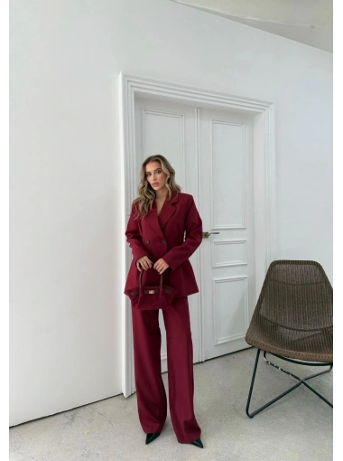 ÇİFT DÜĞME BLAZER CEKET VE PANTOLONLU DOUBLE KUMAŞ İKİLİ TAKIM BORDO KO-1101