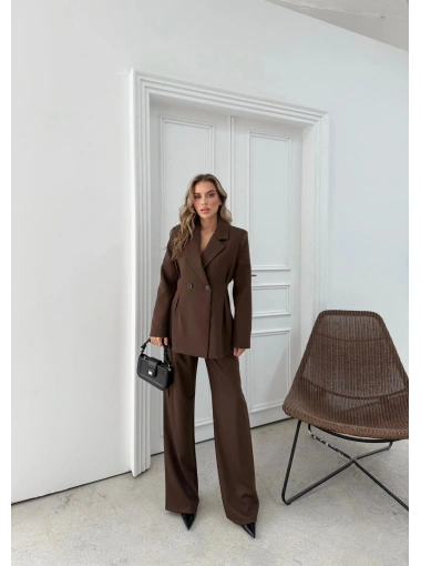ÇİFT DÜĞME BLAZER CEKET VE PANTOLONLU DOUBLE KUMAŞ İKİLİ TAKIM KAHVE KO-1101