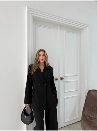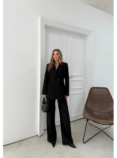 ÇİFT DÜĞME BLAZER CEKET VE PANTOLONLU DOUBLE KUMAŞ İKİLİ TAKIM SİYAH KO-1101