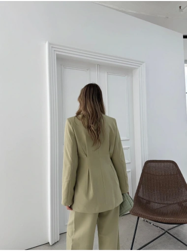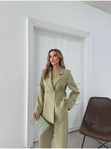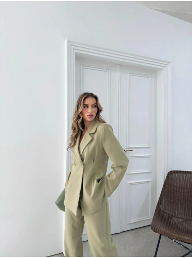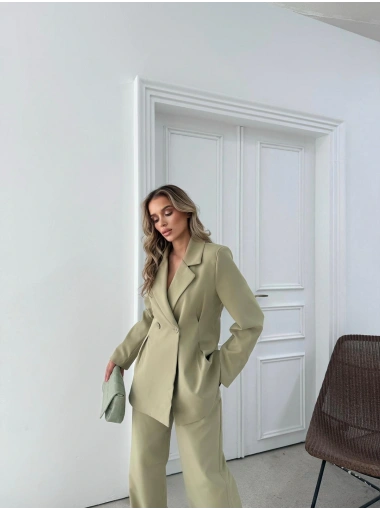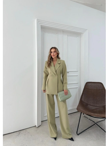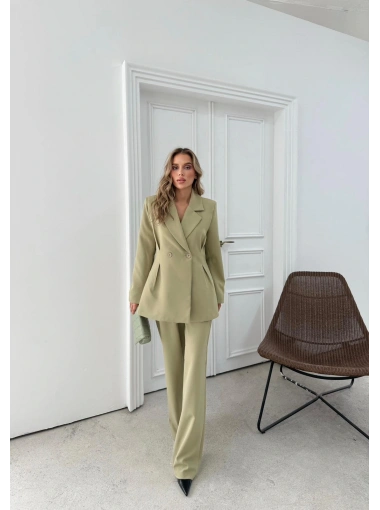 ÇİFT DÜĞME BLAZER CEKET VE PANTOLONLU DOUBLE KUMAŞ İKİLİ TAKIM YEŞİL KO-1101