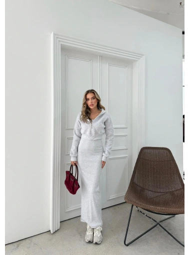 HIRKA VE ELBİSELİ İKİLİ TAKIM GRİ FRG-6010