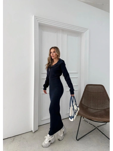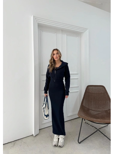 HIRKA VE ELBİSELİ İKİLİ TAKIM LACİVERT FRG-6010
