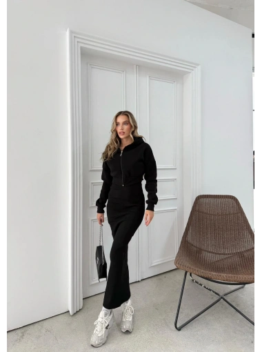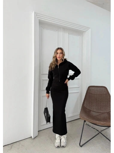 HIRKA VE ELBİSELİ İKİLİ TAKIM SİYAH FRG-6010