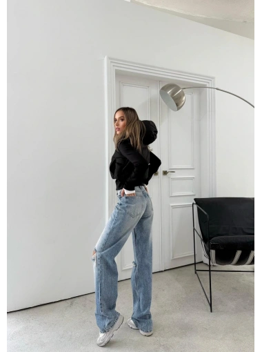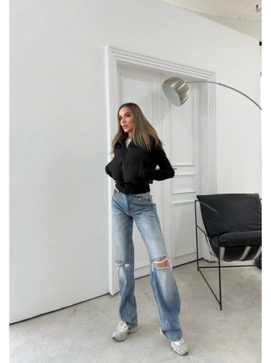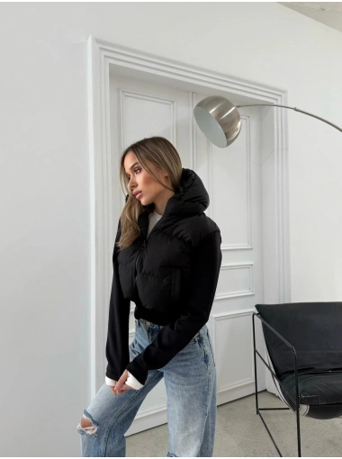 ŞİŞME KAPİŞONLU CROP MONT SİYAH